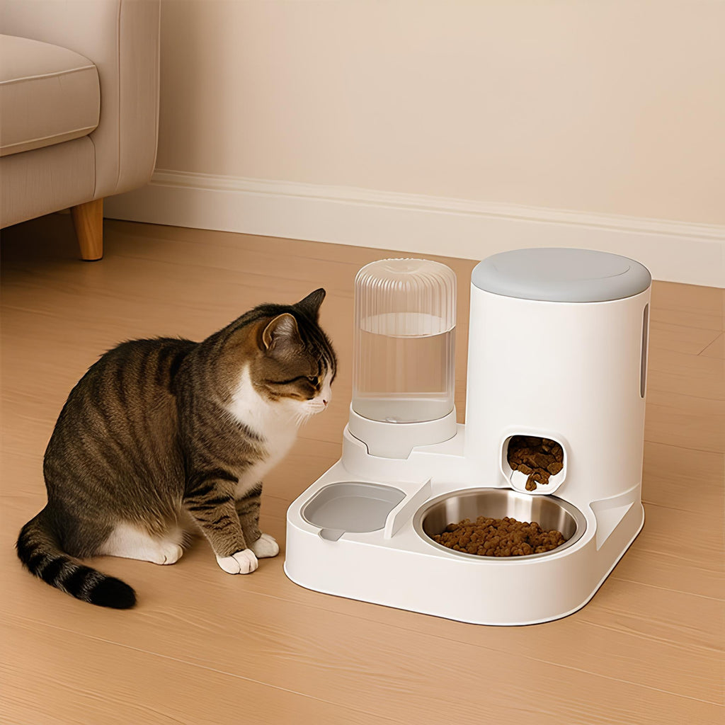 Designed for simplicity and convenience, this dual feeding station provides a constant supply of both food and fresh water — perfect for maintaining your cat’s daily routine with minimal effort. The automatic gravity system refills the bowls as your cat eats or drinks, ensuring steady availability throughout the day.