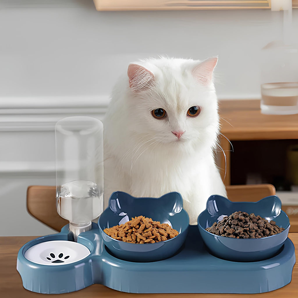 3-in-1 Cat Feeding Station with Water Dispenser