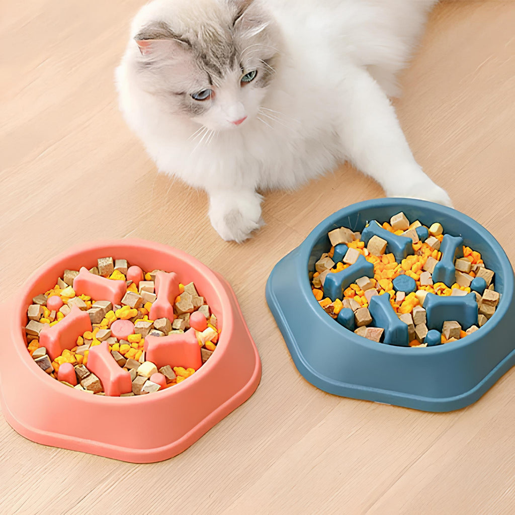 Specially designed to slow down fast eaters, this intelligent feeding bowl helps prevent choking, bloating, and indigestion — common issues in cats that eat too quickly. The raised maze pattern divides food into smaller sections, encouraging your cat to eat at a more natural pace.