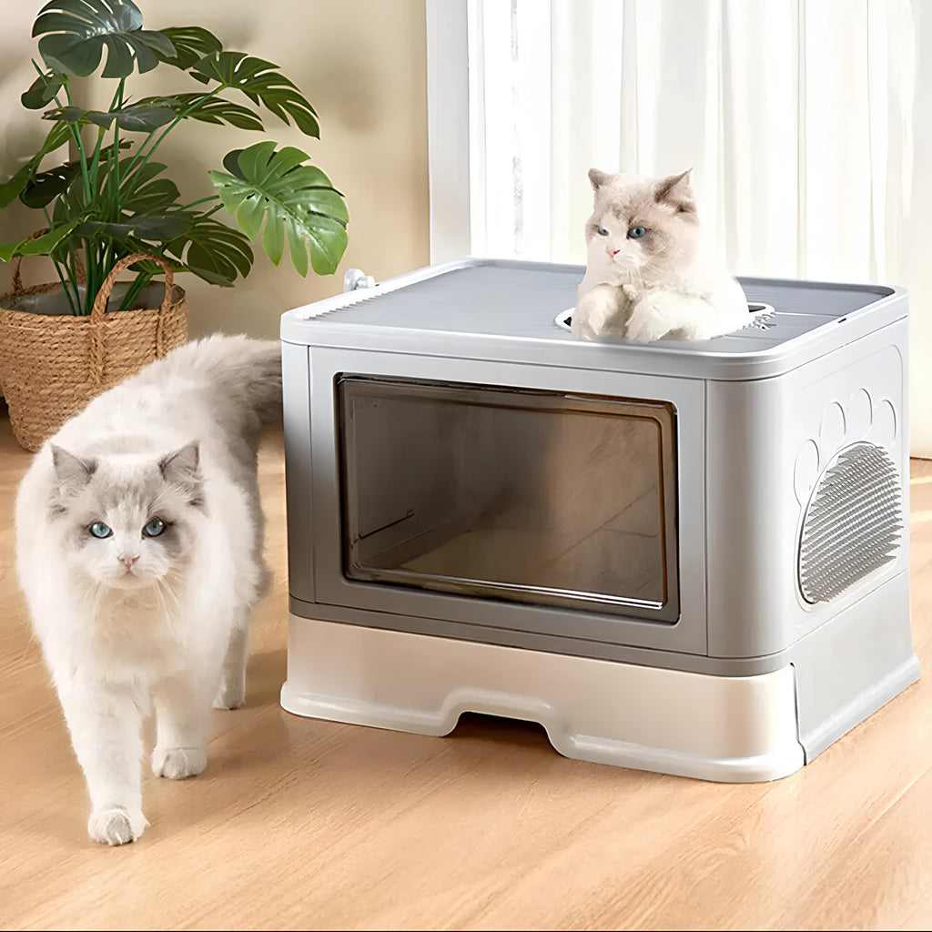 This litter box provides a practical, stylish solution for managing your cat’s litter area—keeping your home clean and your pet comfortable.