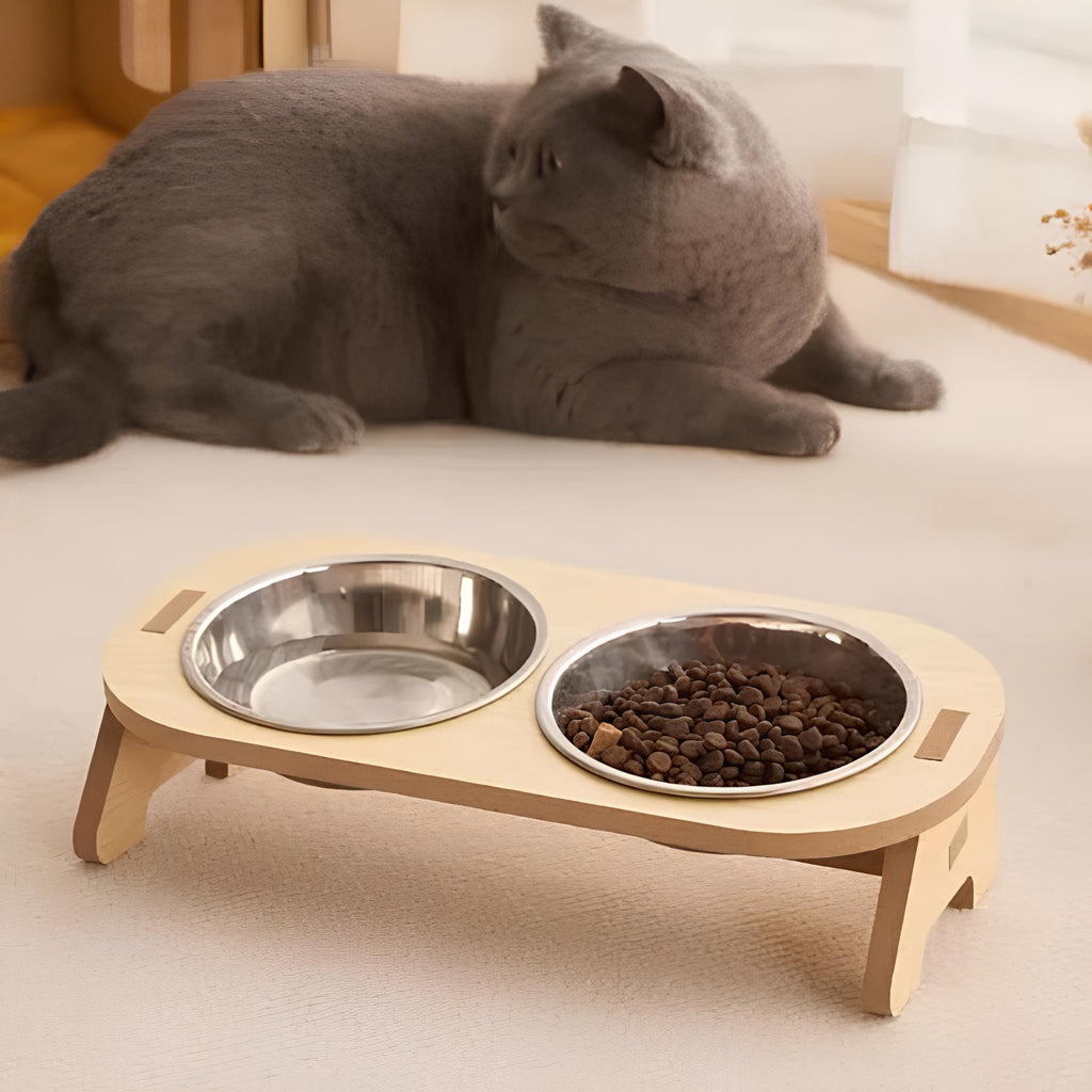 Crafted from eco-friendly wood and durable stainless steel, this feeder is built to last while adding a warm, minimalist touch to your home décor. The anti-slip base ensures stability during meals, and the removable bowls make cleaning quick and easy.